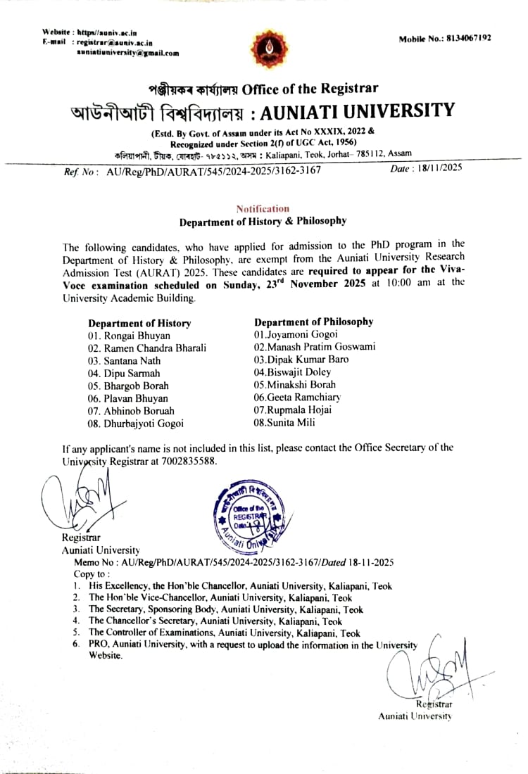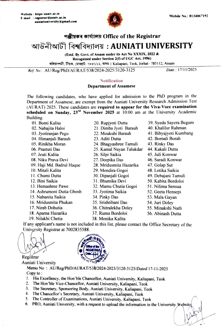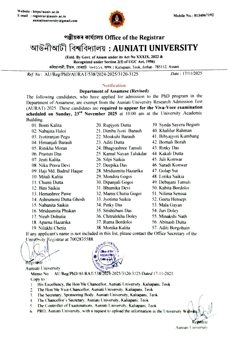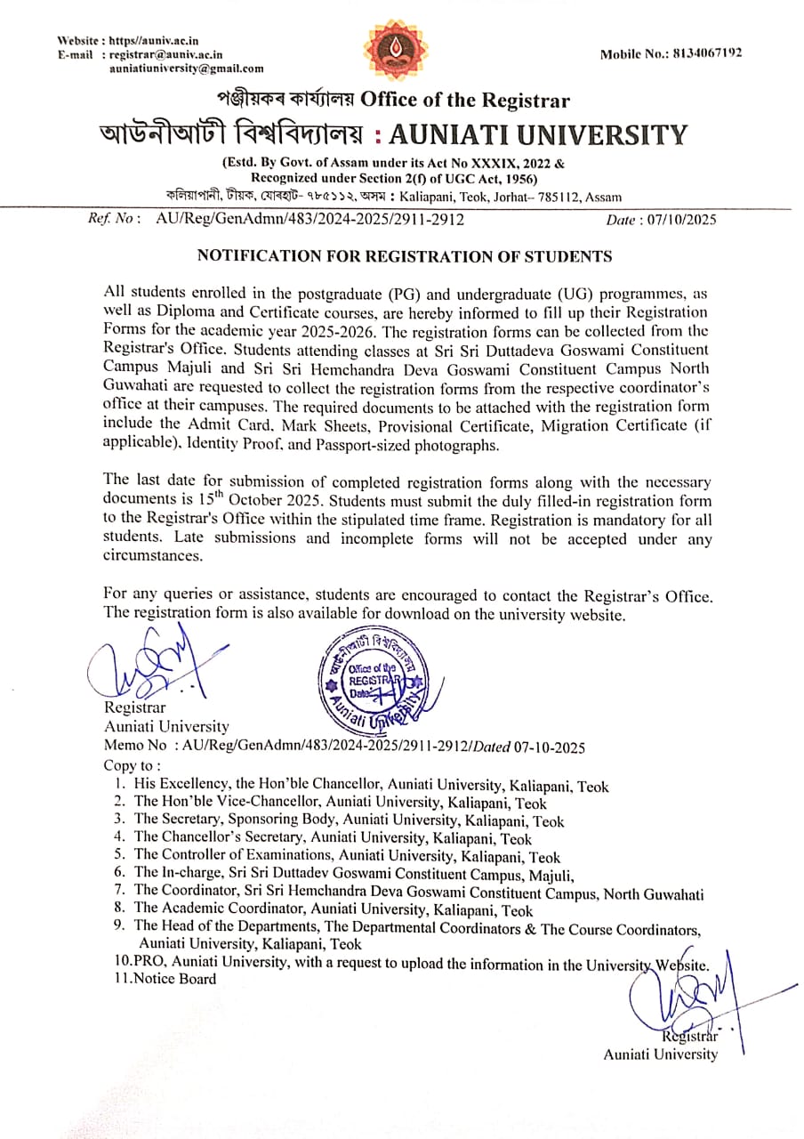 Auniati University, established on November 8, 2022, is a pioneering institution deeply rooted in the rich cultural and spiritual heritage of Assam, India. The university's foundation is inspired by the age-old Vaishnavite traditions of Assam, which emphasize humility, non-violence, self-discipline, truthfulness, and service to others. These values...